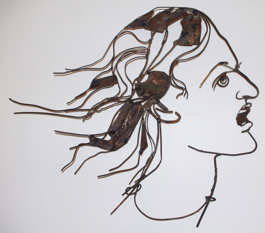 Head of a Woman (after Burne-Jones), steel assemblage, 650 x 750