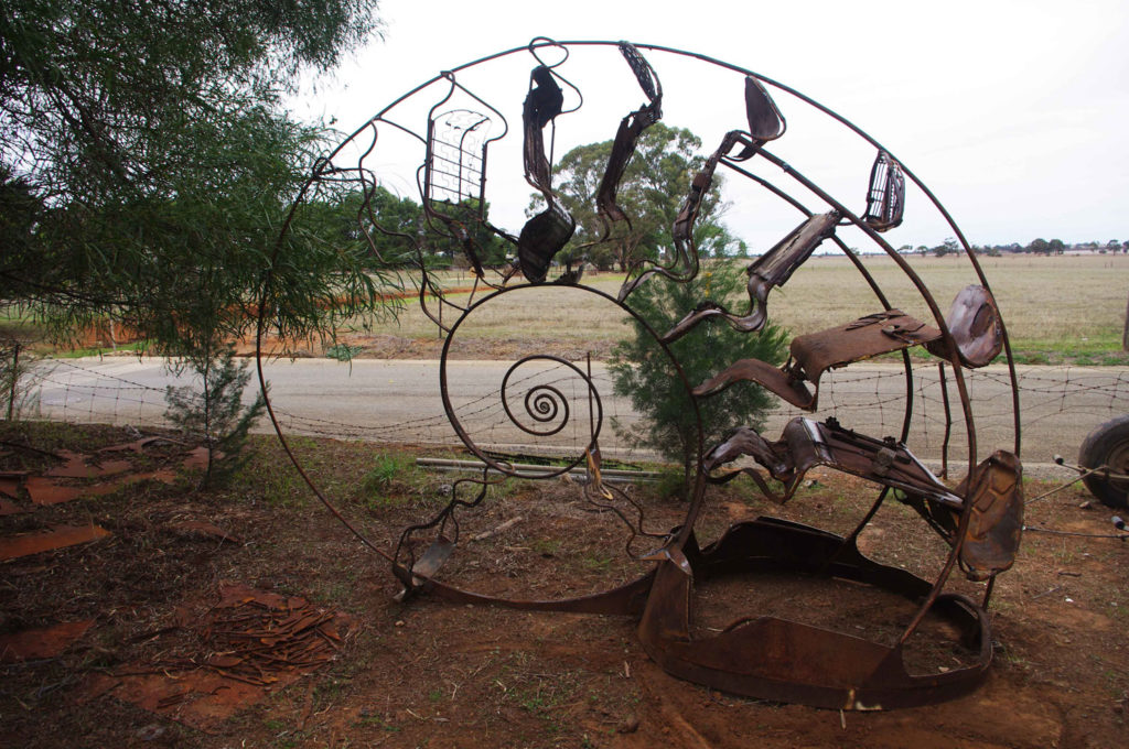 Wheel Wren, steel assemblage, 1800 x 1300 x 600