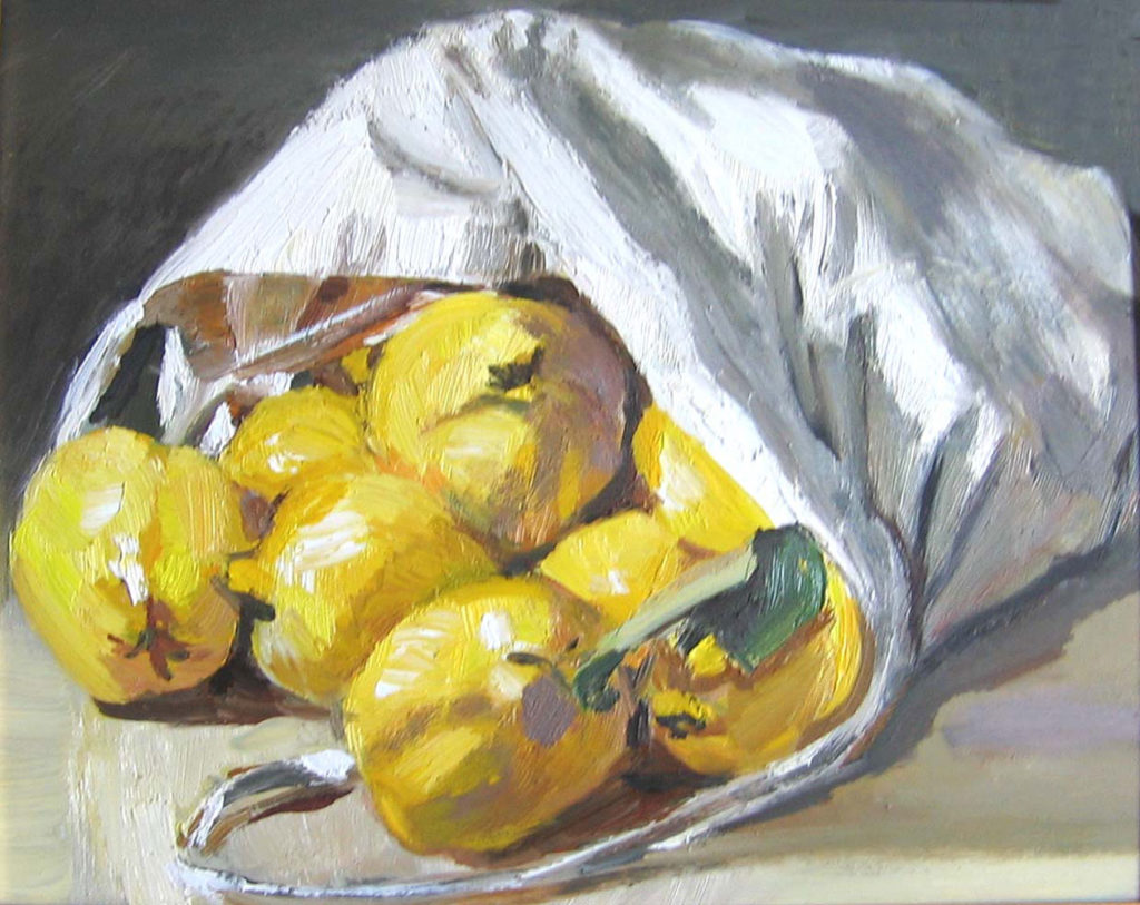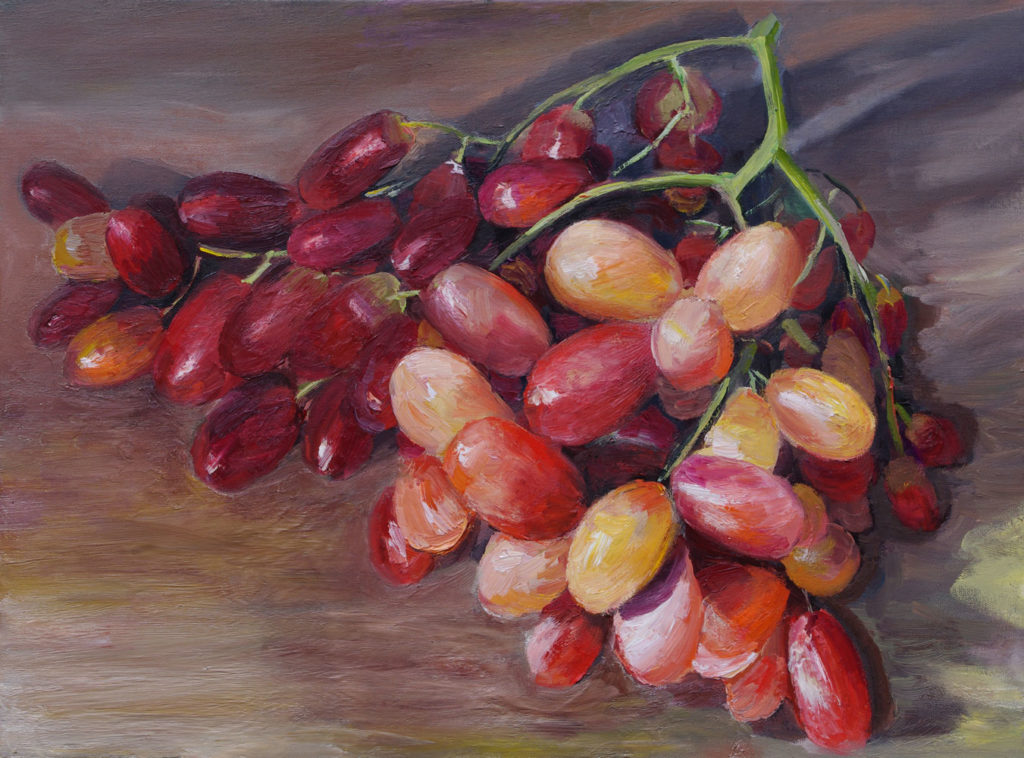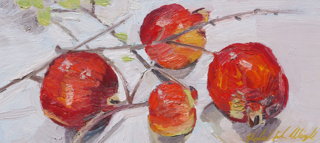 Pomegranates, oil on board, 17x37cm, with framing 39x61cm
