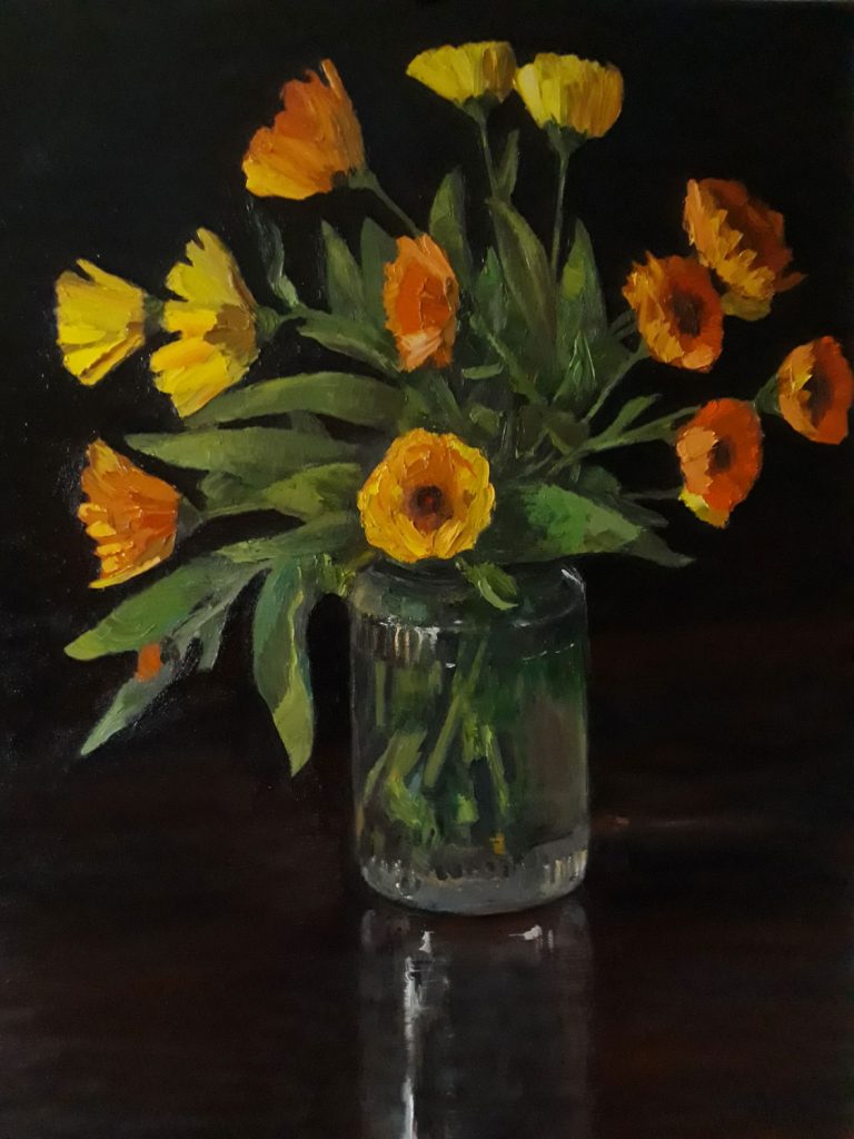 oil painting of orange flowers
